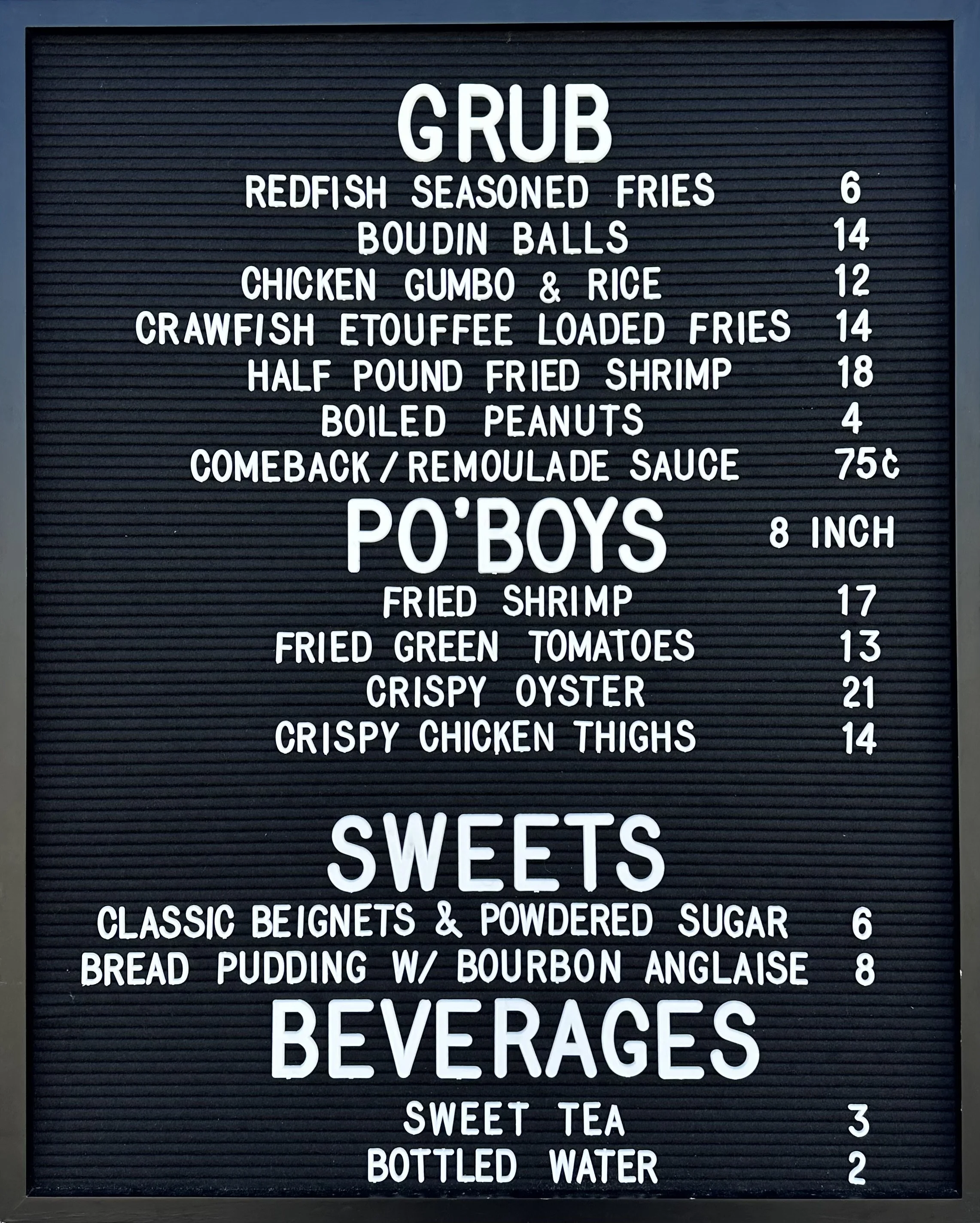 Unleash your taste buds and embark on a flavorful journey with us. Our crispy shrimp, oyster, & chicken thigh PoBoys are more than just a meal - they're a Southern tradition. Indulge in our classic sides & sweet treats, making every bite a moment to savor!