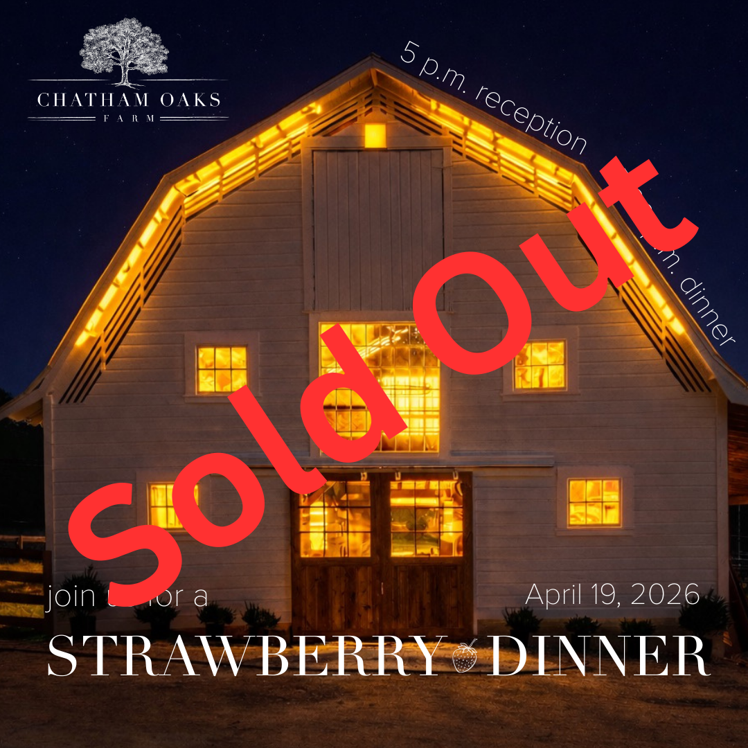 Celebrate the start of strawberry season at Chatham Oaks Farm with a special multi-course farm dinner prepared by Chef Sera Cuni and Chef Bill Hartley. Each course will highlight the first strawberries of the season, served in our newly renovated barn. Guests will gather around the table for an evening of seasonal food and shared conversation just steps from the fields where the berries are grown. Wine, beer, and a signature cocktail will be available for purchase. Seating is limited.